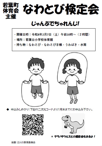 2月に以下の日程でなわとび検定会を開催します!